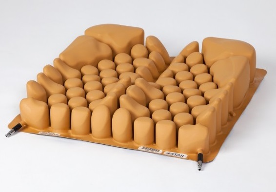 Células pré-isquiáticas: células de aire inclinadas para prevenir el deslizamiento hacia delante. Abductor: Incorporado en el Almohadón para una mejor estabilización de la pelvis. Extremidades pélvicas: área en relieve para ayudar a posicionar las caderas en una posición medio-lateral. DETALLE TÉCNICOAlmohadonde aire en Neoprene, flotacion seca, con celda de aire contorneadas sistema galaxy. |
