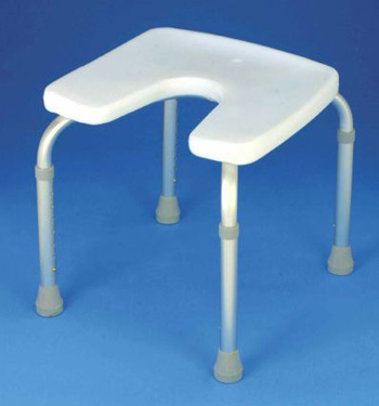 Estructura de aluminio, con tornillos de acero inoxidable Terminación: Anodizado Color: Plateado Totalmente resistente al agua Asiento plástico con escotadura para facilitar el lavado del paciente Regatones: 28mm gris