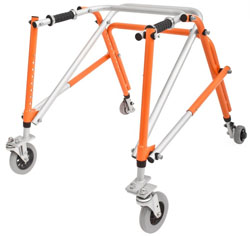 Este modelo de andador fue diseñado en principio para usuarios que necesitan mínimos requisitos para lograr la marcha, pero con el tiempo desarrollamos una serie de accesorios que hacen posible el uso de este andador en un mayor rango de pacientes. -Ruedas Traseras de 60mm con sistema antirretroceso. -Accesorios no incluidos: apoyo de antebrazor con toma, chiripa, soporte de pelvis, toma anterior.
