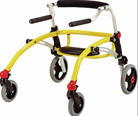 Características técnicas: Andador de uso posterior Crocodile con estructura de aluminio ultraliviano. Marco plegable y ajustable en altura para acompañar el crecimiento del paciente. Empuñaduras independientes multi ajustables en ancho y altura. Ruedas delanteras de 12,5 cm de diámetro, sólidas giratorias con estabilizador de dirección para entrenamiento de la marcha. Ruedas traseras de 15cm de diámetro, sólidas ajustables con freno por fricción y anti-retroceso. Marca: R82.