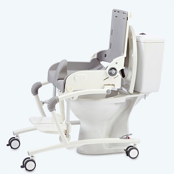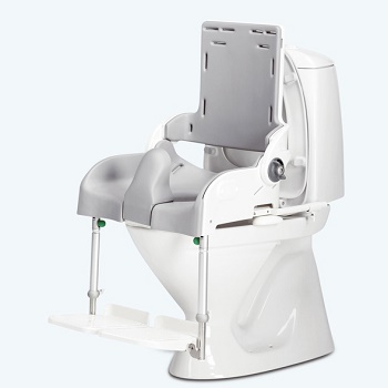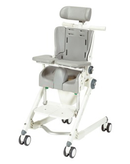 Silla de WC y baño pediátrica disponible en 4 talles. Chasis de aluminio EN AW 6060 con topes de seguridad en las ruedas. Asiento basculante y reclinación de respaldo. Apoyapies regulable en altura e inclinación. Chasis plegable con butaca desmontable y regulable en altura para utilizar sobre el inodoro o la bañadera. Laterales de tronco acolchados para un control moderado. Apoyacabeza regulable en altura. Cubeta orinal para uso fuera del inodoro.