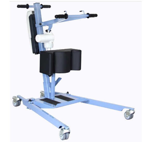 Elevador de pacientes Motorizado tipo Stand-Up Lift. Apertura de base mecánica. Plataforma de pies desmontable. Peso máximo del usuario 150 kg. |