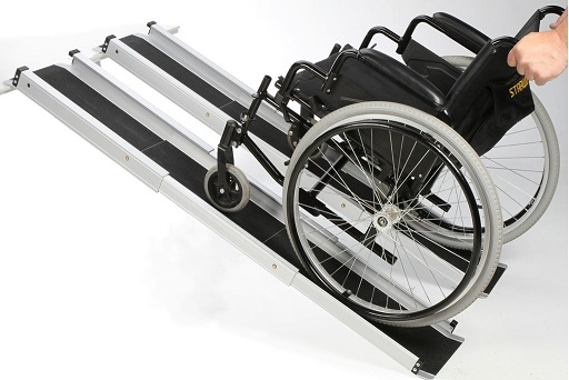 Medida (A). Rampa extensible de aluminio para sillas de ruedas, largo total: 147cm (el par). Medida (B). Rampa extensible de aluminio para sillas de ruedas, largo total: 210cm (el par). |
