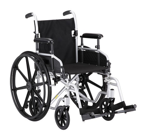 La L405 es una silla all in. Se puede utilizar como silla de ruedas autopropulsada estándar o silla de traslado. Medidas: