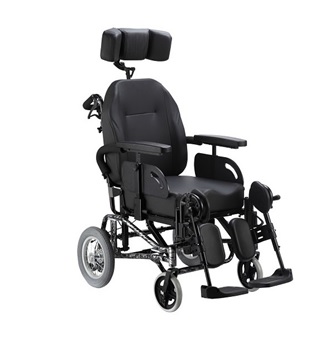 Silla de Ruedas Comfort con reclinacion de 90 a 135° y Basculacion Tilt 0 a 30° mediante dos pistones hidraulicos. Apoya brazos Regulables en Altura. Apoya pies rebatibles y elevables con contenciones laterales acolchadas. Asiento y respaldo rigido modular. Apoya cabeza acolchado regulable en altura y profundidad. Ruedas delanteras de 17.5 cm y Ruedas traseras de 30 cm. Peso maximo de usuario 125 kg.