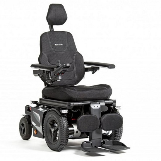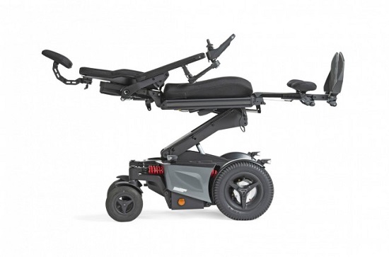 Silla de Ruedas Motorizada de Traccion delantera con Gyro module, suspension ajustable en las 4 ruedas. Joystick R-net extandible con bluetooth. 5 funciones motorizadas: Tilt 0 a 50°, Reclinacion 90 a 180° , Elevacion de asiento hasta 40 cm, Bipedestacion progresiva y Apoya piernas de plataforma central elevables. Soporte de Pecho, Apoya Cabeza, Soporte de pantorrilas, Soporte para Rodillas y Cinturon Pelvico. Incluye cargador de 8 AH y Baterias de 80 Amperes.